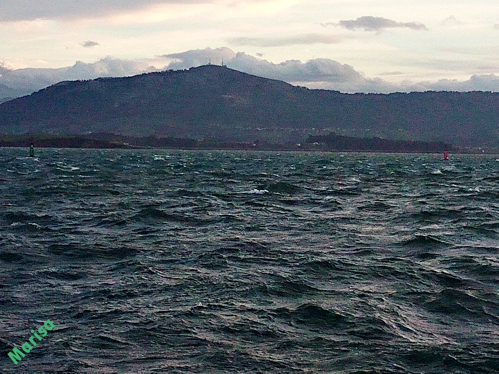 En estas dos fotos se puede ver lo brava que estaba con el viento. Me encanta la Bahía cuando está así, la hace más bonita.